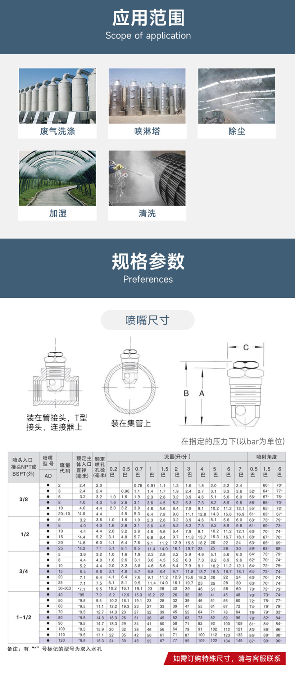 3. 喷帽在每组管道尺寸内可互换,喷帽也有广角喷雾类型。