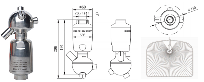 CY100旋转清洗球运行平稳,冲击力大,可进行旋转清洗。它由不锈钢制成,卫生且设计用于化学储罐内部的360°自旋转清洗。它专为乳制品、食品、制药、啤酒、化学品、工业发酵等需要高冲击力清洗的行业而设计。