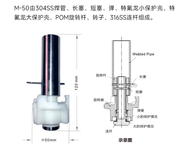 用于生物制药、生物发酵、食品饮料、化工加工、化工石油等行业的反应器、罐体或其他容器内壁的自动清洗,耐酸碱、防腐蚀。