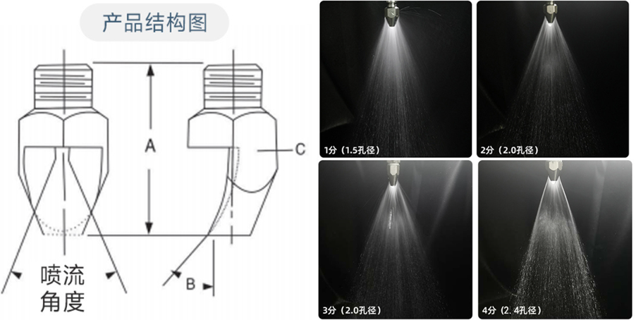1.窄角扇形喷嘴可产生具有高冲击力的窄角扇形喷雾。这种喷雾产生的喷雾分布均匀,液滴大小适中