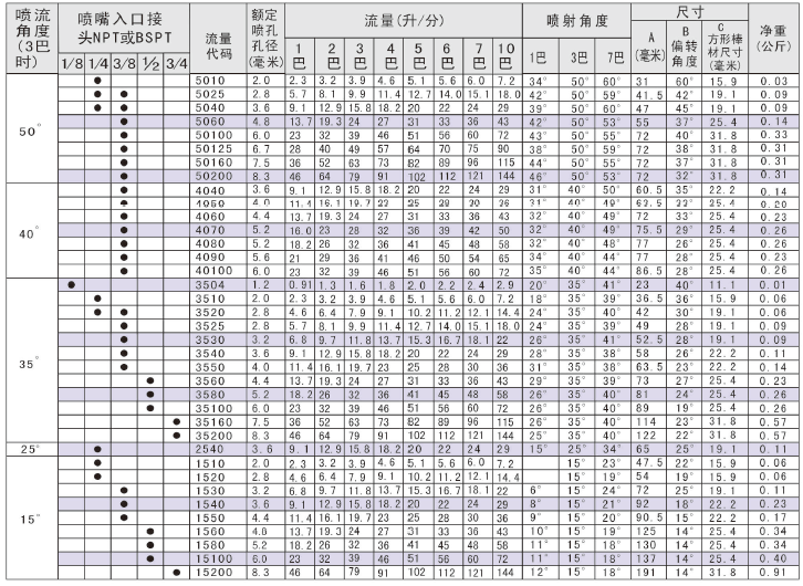 | 喷雾角度 | 15° ~ 50° |