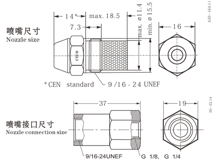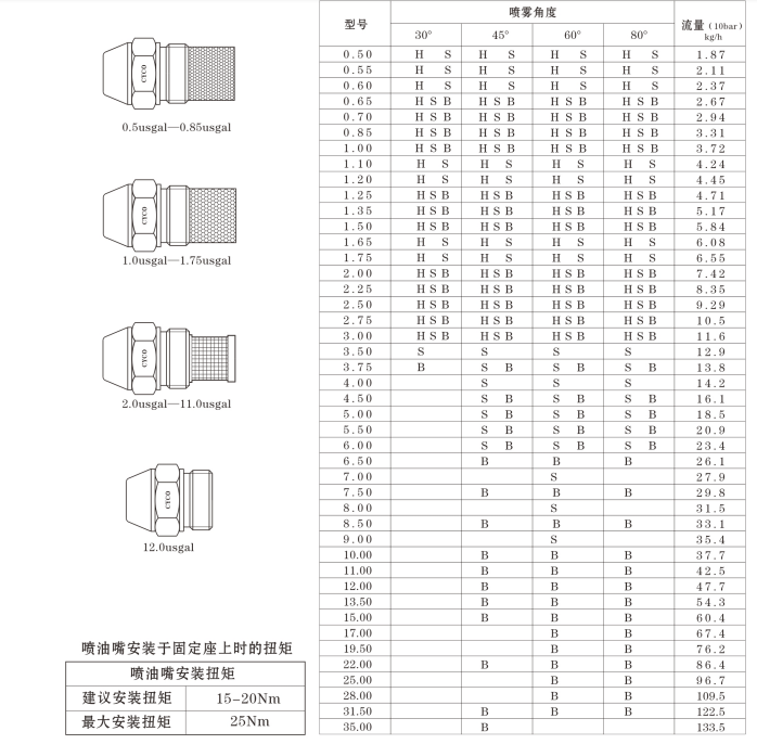 | 喷雾角度 | 30°, 45°, 60°, 80° |