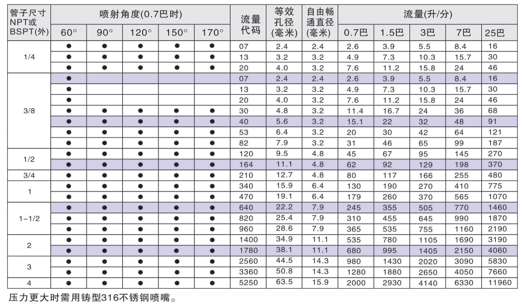 喷雾角度: 60°, 90°, 120°, 150°, 170°