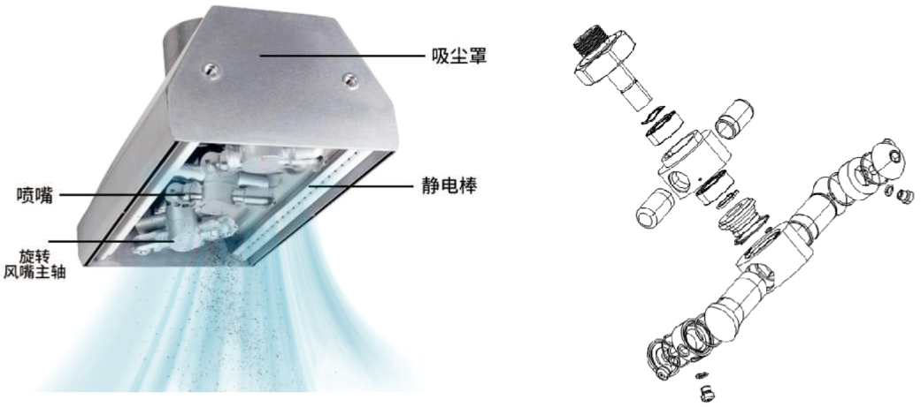 旋转清洗高压喷嘴是专门解决企业生产制造中除尘、吹水、除异物、烘干、除静电等难题的创新气动产品,特别适用于异形件的清洗、烘干。