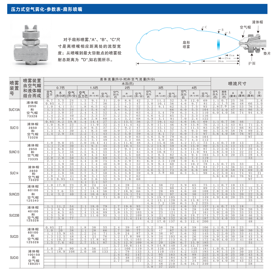 2.可调式空气雾化喷嘴,可以调节液体流量,在不改变气压和液体压力的情况下,也能产生符合要求的喷雾,因此适应性强。